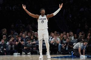 本場(chǎng)比賽,灰熊中鋒小賈倫·杰克遜出場(chǎng)32分鐘22投12中,三分5中3、罰球3中3拿到全場(chǎng)最高30分外加3籃板1助攻2搶斷2蓋帽,有4失誤,正負(fù)值-21。