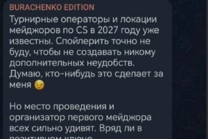 體育資訊1月16日訊 根據獨聯體內幕人士、前Pari的電競部門負責人BURACHENKO的爆料,2027首屆Major的舉辦地點和主辦方已確定,且會讓所有人都大跌眼鏡,大概率不是好消息。