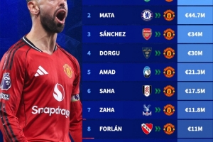 體育資訊1月16日訊 德轉(zhuǎn)列出曼聯(lián)1月冬窗引進(jìn)球員花費(fèi)排行,B費(fèi)6500萬歐第一。