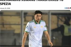 當(dāng)?shù)貢r(shí)間本周五,羅馬俱樂部在官網(wǎng)發(fā)布公告稱:“羅馬俱樂部宣布,亞利桑德羅·羅馬諾被租借至斯佩齊亞。這名19歲的瑞士中場(chǎng)在2026年1月6日羅馬對(duì)萊切的意甲聯(lián)賽中上演了羅馬一線隊(duì)首秀。祝你好運(yùn),亞利桑德羅!”