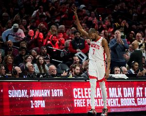 此役,火箭球星杜蘭特出場40分01秒18投11中,三分8中6、罰球14中11,砍下39分4籃板7助攻2搶斷1蓋帽。