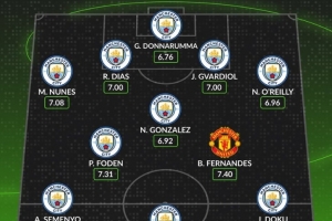 體育資訊1月17日訊 本輪英超曼市德比即將打響,數據網站Whoscored也盤點了兩支球隊本賽季英超場均評分最高陣容,其中曼城10人入選,具體如下:
