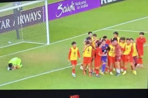 體育資訊1月17日訊 中國U23男足點球大戰(zhàn)淘汰烏茲別克斯坦U23男足晉級亞洲杯四強(qiáng),中國男足中后衛(wèi)蔣光太曬照慶祝勝利。