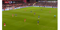 上半場即將進入補時階段時,阿森納門將拉亞出擊到本場邊線附近險些送給對手一個空門機會;他第一下的鏟球踢呲了,但隨后快速起身將球踢出邊線。
