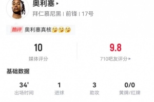 體育資訊1月18日訊 拜仁在本輪德甲焦點(diǎn)戰(zhàn)5-1逆轉(zhuǎn)萊比錫,奧利塞替補(bǔ)獨(dú)造四球,本場(chǎng)數(shù)據(jù)如下: