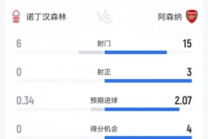 體育資訊1月18日訊 本輪英超,阿森納0-0客平諾丁漢森林。雙方全場重點數(shù)據(jù)對比如下↓(主隊森林在前)