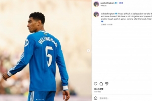 貝林厄姆曬出自己的比賽照,并配文:“客戰巴列卡諾總是很艱難,但我們拿到了一分并繼續向前看。我們必須團結一致,為國家隊比賽周之后的又一輪密集賽程做好準備。馬德里前進!”