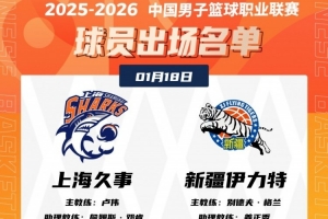 體育資訊1月18日訊 今晚19:35,上海主場迎戰新疆,賽前大名單出爐。