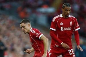 維爾茨最初出現在利物浦前場三人組的右側,但他獲得了很大的自由度,可以在中路活動并參與進攻。在他前面,埃基蒂克有效地領導了鋒線,并能與周圍的隊友很好地配合。這對搭檔在第21分鐘時真正活躍起來,當時維爾茨一記精準的長傳找到了左路的埃基蒂克。這名前鋒接球后向禁區推進,迫使杜布拉夫卡做出撲救。