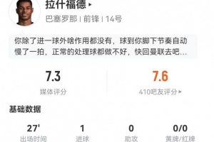 體育資訊1月19日訊 巴薩在本輪西甲1-2不敵皇社,拉什福德本場數據如下: