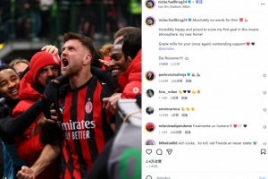 他也在賽后通過社媒曬出自己的慶祝照并配文:“簡直無法用語言形容!??????無比開心和自豪地在如此瘋狂的氣氛中打入我的首粒進球,我的新家!”