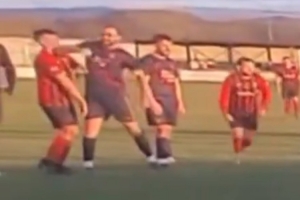 特里亞德灣的湯姆·泰勒在對方即將主罰點球時,用肘部擊打了對方球員面部。事發(fā)后,泰勒已被俱樂部解約。同時,北威爾士警方證實,一名35歲的男子已被逮捕。