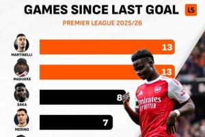 體育資訊01月19日訊 盡管阿森納目前在英超以7分優(yōu)勢(shì)領(lǐng)跑,但根據(jù)LiveScore統(tǒng)計(jì),阿森納隊(duì)內(nèi)一眾攻擊手已經(jīng)遭遇至少3輪的聯(lián)賽球荒,多的甚至有13輪。