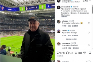 曾兩度執教皇馬的現任巴西隊主帥安切洛蒂重返伯納烏,現場觀看了這場比賽,他在社交媒體上曬出照片,配文:“看到皇馬獲勝真是太開心了!而且還能與我的(巴西足協)副主席和國家隊總監共同分享勝利的喜悅。”