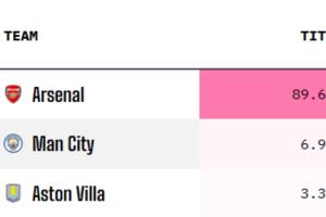 體育資訊01月19日訊 英超第22輪爭冠集團集體剎車,阿森納戰平,曼城和維拉則一同輸球。Opta超級計算機最新的演算結果顯示,阿森納的奪冠概率已接近9成。