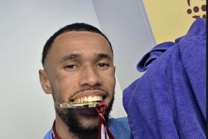 奪冠后葉赫萬·迪烏夫社媒曬出與獎牌、毛巾的合照,配文:“都在這里(獎牌和毛巾)。”