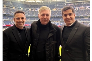 巴西國(guó)家隊(duì)官方更新社媒動(dòng)態(tài),曬出安切洛蒂與巴西足協(xié)副主席迪亞斯、國(guó)家隊(duì)總監(jiān)卡埃塔諾在伯納烏的合照。