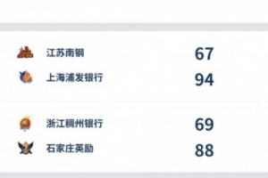 江蘇南鋼 67-94 上海浦發銀行。上海隊卡特36分9助攻,赫伯德18分12籃板,徐娜也貢獻10分,不過提前5犯離場。江蘇隊投籃命中率不足4成,三分線外20次出手只命中2球,近期一直無法取得連勝,許晨妍和洪欣妍分別貢獻12分。