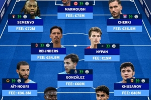 曼城自2025年1月以來引援陣容:總耗資4.8億歐元