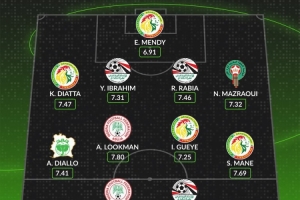 中場:阿瑪德·迪亞洛(科特迪瓦,7.41分)、盧克曼(尼日利亞,7.80分)、伊德里薩·蓋耶(塞內加爾,7.25分)、馬內(塞內加爾,7.69分)