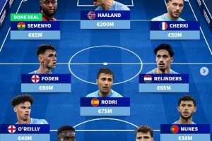 體育資訊1月20日訊 曼城已經(jīng)官宣簽下格伊,《轉(zhuǎn)會(huì)市場》預(yù)測了曼城主力陣容,新援塞梅尼奧和格伊在列。