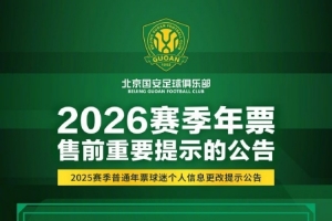 尊敬的球迷朋友,大家好!俱樂部將于春節(jié)假期后啟動2026賽季年票發(fā)售工作。為了方便2025賽季已購年票球迷進(jìn)行原座位續(xù)購或優(yōu)先選座,請仔細(xì)閱讀圖片中的重要提示內(nèi)容