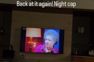 詹姆斯曬出他在酒店房間內觀看紀錄片劇集《美國法醫檔案》的動態:“再次觀看!睡前放松。”