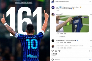 數(shù)據(jù)統(tǒng)計(jì)顯示,他也也追平馬佐拉并列國(guó)米隊(duì)史射手榜第4位。