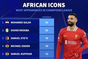 體育資訊1月20日訊 歐冠即將戰火重燃,參加了非洲杯的薩拉赫已經歸隊訓練,他能否出戰本場比賽值得關注。數據統計顯示,薩拉赫已經是歐冠賽事非洲球員出場王。