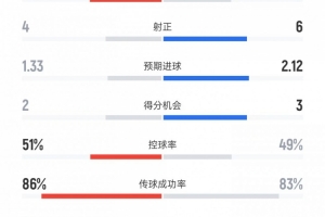 預(yù)期進球——1.33比2.12