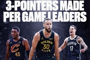 場均三分榜單,庫里唯一4+,場均4.5個領跑全聯盟!
