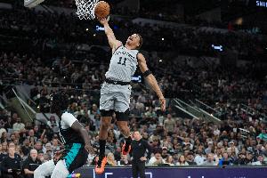 請讓9點的比賽9點開始!文班賽前熱身扣壞了籃筐 馬刺回更衣室了