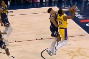 GIF-八村塁反擊被斯潘塞·瓊斯帽掉,裁判吹掘金球權,湖人挑戰失敗