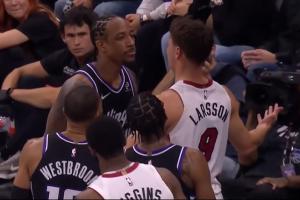 體育資訊1月21日訊 NBA常規賽,熱火130-117戰勝國王。在比賽中,熱火球員拉松和國王球員德羅贊發生了兩次沖突。