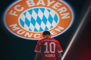 體育資訊1月21日訊 穆西亞拉更新社媒動(dòng)態(tài),曬出與拜仁隊(duì)徽的合照。