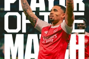 體育資訊1月21日訊 阿森納官方消息,熱蘇斯被評為阿森納3-1國際米蘭的隊內全場最佳。