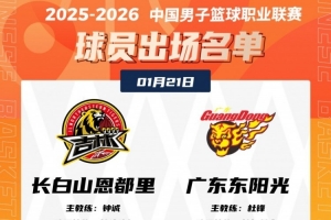 體育資訊1月21日訊 今晚19:35,吉林將在主場迎戰廣東,賽前大名單出爐。