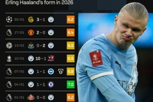 本場比賽哈蘭德未能打破進球荒,本場賽后評分也僅有6.2分。他在2026年的7場各項賽事僅是在對陣布萊頓比賽中打進一粒點球,且7場比賽sofa評分最高也只有7分。