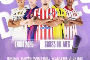 體育資訊1月22日訊 西甲公布了1月聯賽最佳U23球員候選5人名單,皇薩競各1人入圍。