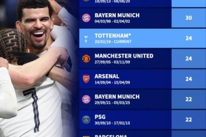 體育資訊1月21日訊 歐冠聯賽階段第7輪比賽,熱刺在主場以2-0的比分戰勝多特。盡管在聯賽中表現不佳,但熱刺在歐冠中卻重拳出擊。本場比賽之后,北倫敦球隊歐戰主場不敗場次增加到24場。根據德國轉會市場的統計,熱刺歐戰主場不敗場次足以位居第3位。