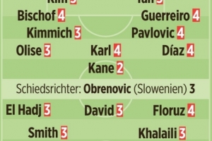 體育資訊1月22日訊 在本輪歐冠,拜仁2-0擊敗圣吉羅斯。《圖片報》也為拜仁球員本場表現(xiàn)做出評分,具體如下(德媒評分1分最高,5分最低):