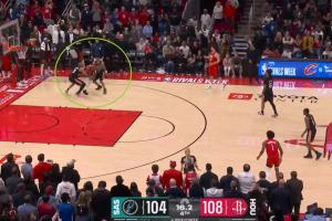 比賽剩最后16秒,馬刺104-108落后火箭4分,杜蘭特被包夾丟球火箭喊停,但是裁判報(bào)告顯示凱爾登最初與球接觸,然后將手移到了杜蘭特手臂上導(dǎo)致后者失去對(duì)球的控制,這是一個(gè)犯規(guī)裁判漏判。
