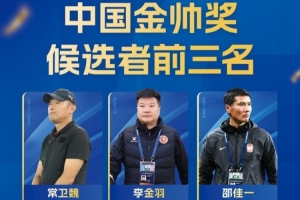 體育資訊1月22日訊 《足球周刊》公布了2025中國金球獎各獎項前三名,其中常衛魏、李金羽、邵佳一躋身中國金帥獎前三名。