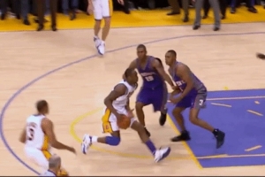 他的右手突破急停跳投和左手突破急停跳投,動作甚至全然不同 ——左手突破急停跳投比較順勢,收球即可;右手突破急停跳投時,他通常會從雙腳平行起跳,空中扭轉到右肩靠前(還經常要踢右腿保持平衡)。在進攻端,幾乎沒有他做不出來的動作。到最后,遇到不同防守,他的身體便像條件反射般轉換到進攻狀態,其速度之快甚至不需要調整。無論是背身單打、面筐切入、無球跑動后接球繞掩護尋求攻擊,他都有無數花招可以展示。他的射程遠達半場的任何地點,體能支撐每場30次甚至40次的投籃。