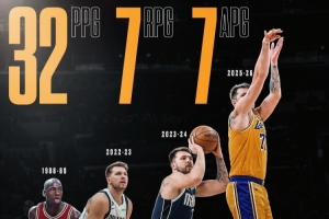 東契奇本賽季,場均33.5分7.7籃板8.7助攻。