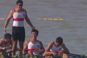 體育資訊11月10日訊 第十五屆全國運動會男子四人雙槳決賽,來自江蘇隊的張自毫、臧哈、張漢文、蔡鵬鵬以4:12.24強勢奪魁,拿下賽艇項目首枚金牌!