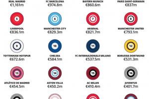 巴黎圣日耳曼(8.37億歐元)連續第四年保持前五名(第4位),這得益于其贏得首個歐冠冠軍的成功賽季。此外,俱樂部繼續成功利用其品牌資產推動商業增長,與國際品牌如Air Jordan的合作使其影響力滲透到流行文化的各個領域。
