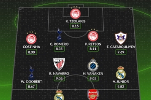 后衛:科斯蒂尼亞(奧林匹亞科斯)、羅梅羅(熱刺)、雷索斯(奧林匹亞科斯)、賈法爾古利耶夫(卡拉巴赫)