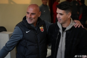 據海港新聞官趙昊晨社媒消息,前海港外援奧斯卡賽前來到海港在卡塔爾的駐地探班,并現場觀看了與澤尼特的熱身賽。