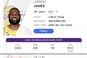 對(duì)此,美媒Basketball Forever曬出了本賽季詹姆斯和狄龍的年齡、數(shù)據(jù)對(duì)比,